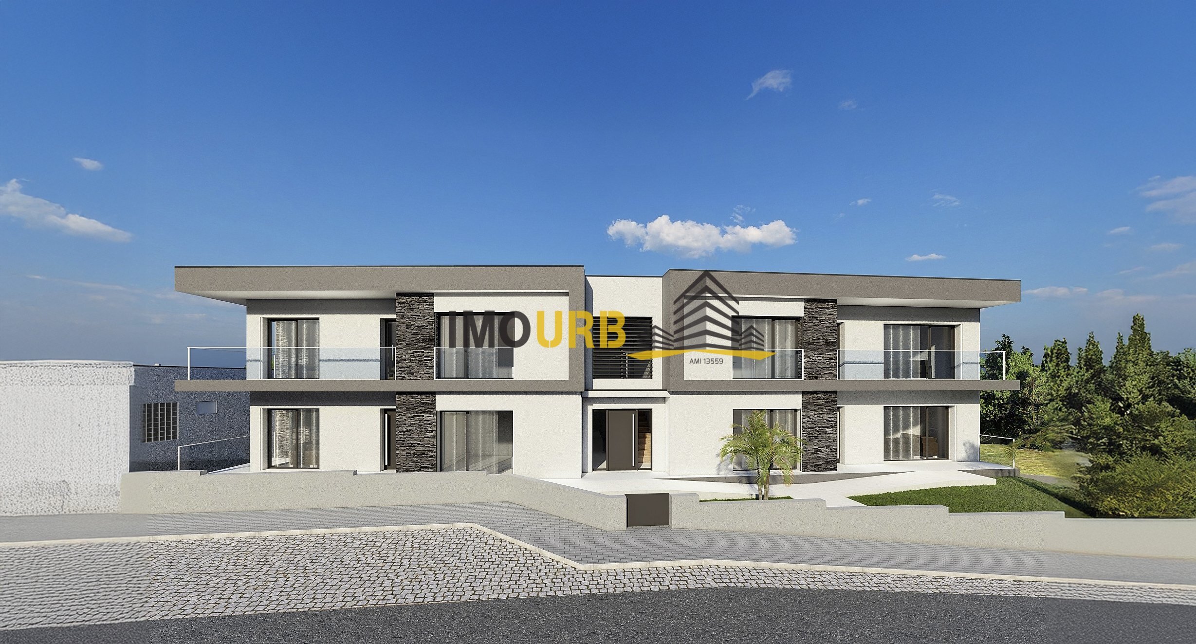 Prédio composto por quatro apartamentos de tipologia T3, todos com divisões amplas, duas suítes e um quarto simples, três Wcs completos e garagem para de duas a quatro viaturas.
